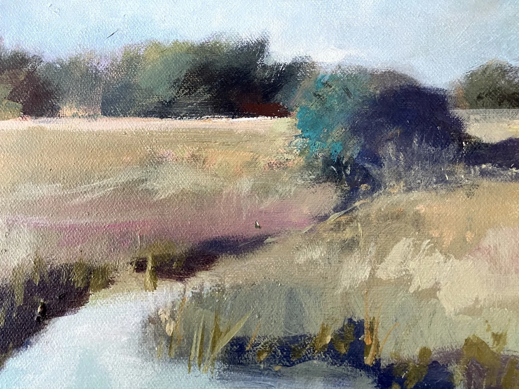 Chris paints mainly in acrylic or watercolour, and sometimes with mixed media or pastels. She enjoys painting outside whenever possible and often whatever the weather! Chris is a member of the Town & County Art Society and serves on their Council.