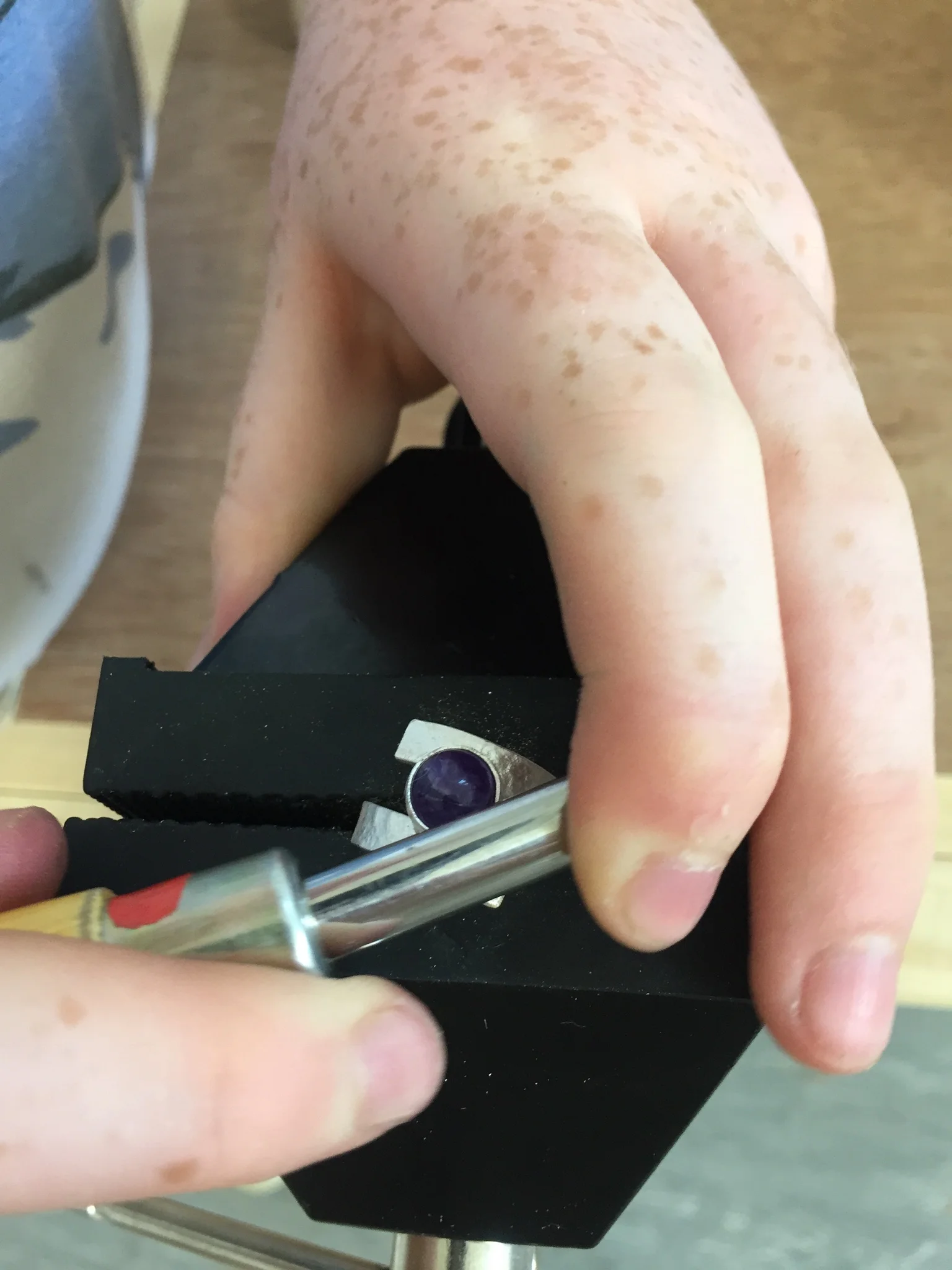 Please make sure that you have a hairband to tie your hair back and do not wear floaty skirts, really loose fitting clothes, scarves or open toe shoes, as we will be in a workshop environment. We will use torches and some acids, which can damage clothes so an apron or pinny is recommended as well as remembering not to wear your favourite jeans!