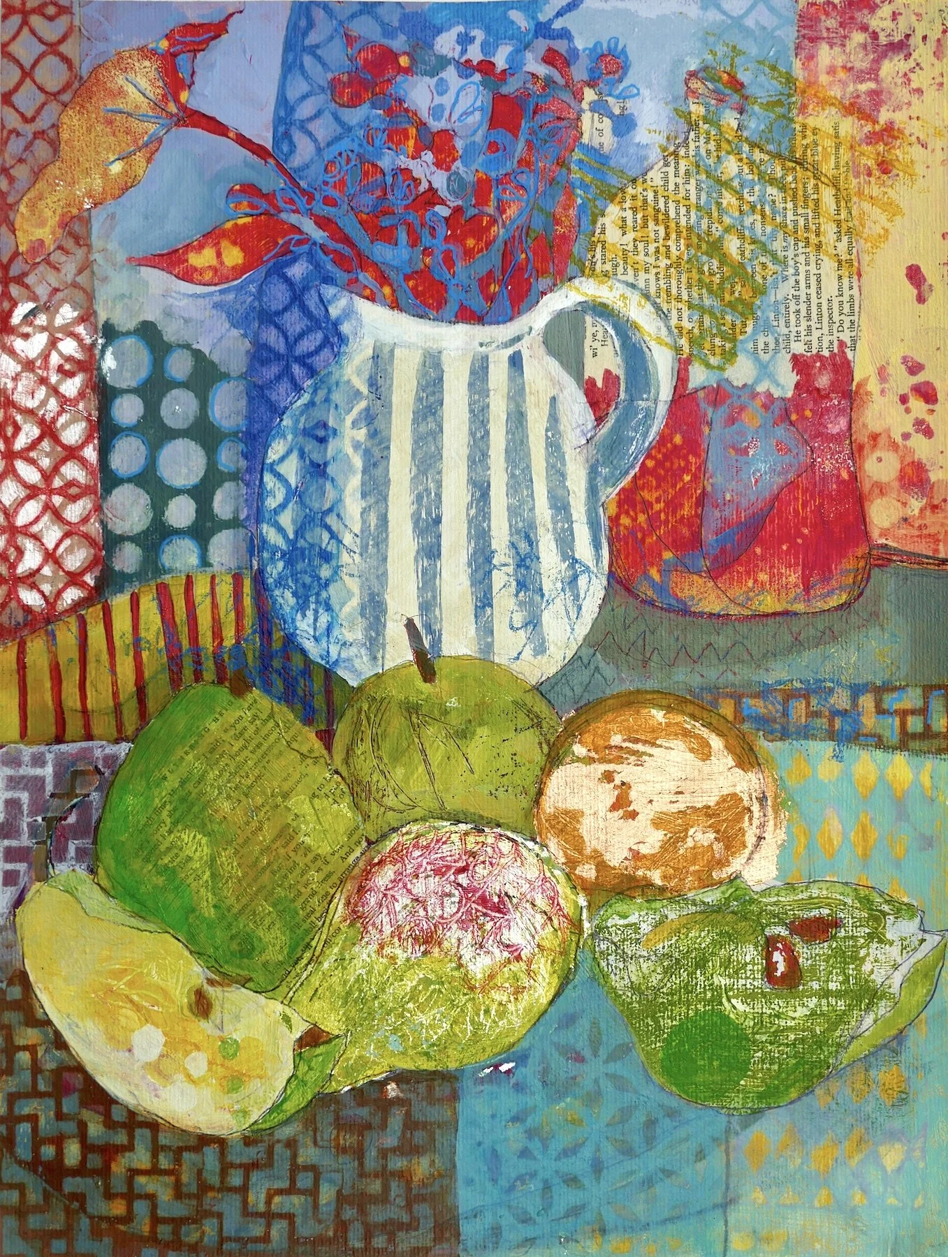Make a collage based on still life arrangements using painted, found and vintage papers.